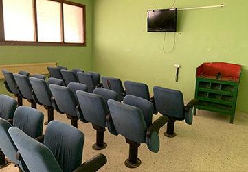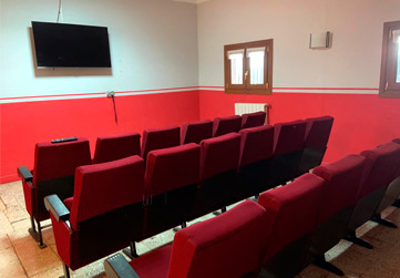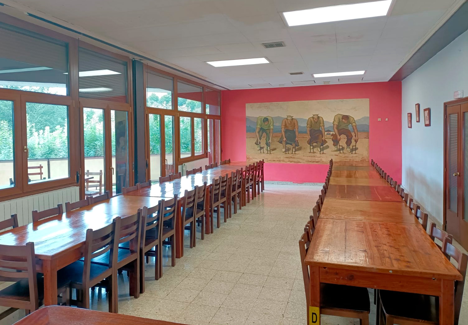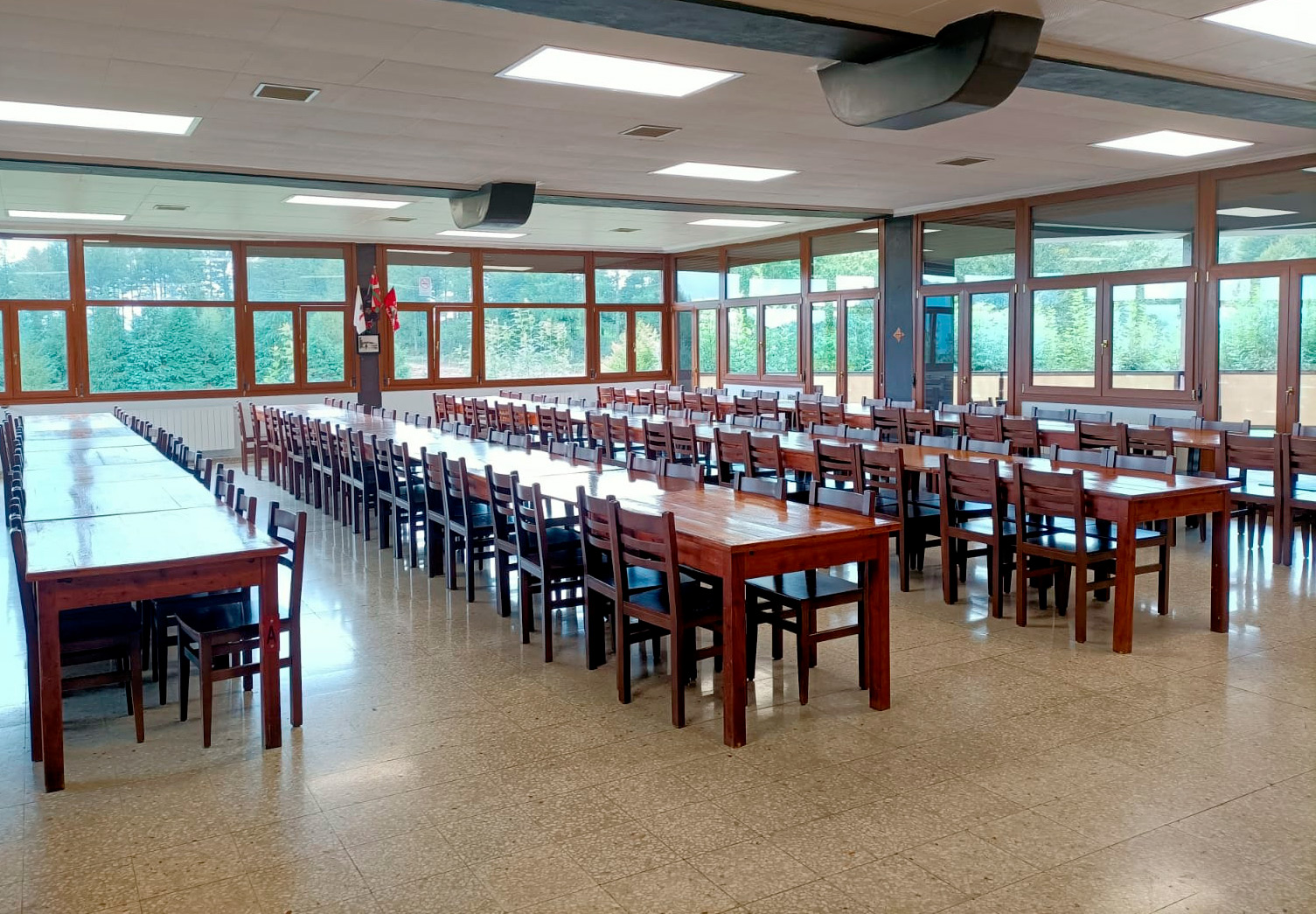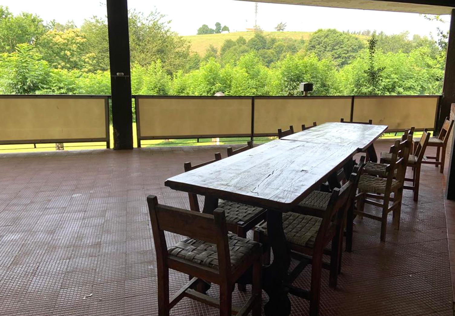 Azpiko solairuan berriz, beste erretegi haundiago bat, frontoi txiki bat, umeendako telebista gela eta pinpon mahaia.